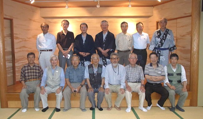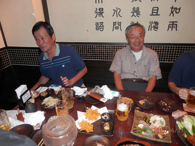 6月9日 (21:05) 宿坊山香荘大広間にて ![]() (後列左から佐藤(久)、原、半場、高崎、小野、中村、小島、吉沢) (前列左から池知、本間、蛭川、佐藤(力)、坂井、岡田) |