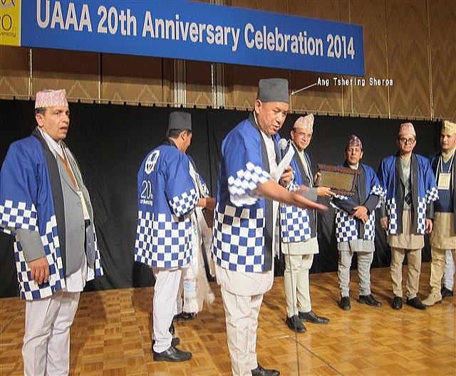 ●Fw: UIAA Honorary Membership Fw: Tom Nakamura 中村 保 ******2014年6月11日のHUHACメールから転載 American Alpine Club(AACアメリカ山岳会)が英文ジャーナルJapanese Alpine Newsを評価して 小生を国際山岳連盟UIAAの名誉会員に推薦してくれました。 推薦人のBill Lowell PatnamさんはUIAA名誉会員(UIAAの活性化に尽力)で最近までAAC名誉会長でした。 アメリカの有名な天文台Lowell Observatory (Flagstaff, Arizona)の館長を長年務めました。 現在91歳、ニコラス・クリンチさんの親友です。 この天文台をつくった「知られざるジャパノロジスト」Percival Lowellは ウエストンより以前に日本アルプスを立山から黒部を横断し長野に抜けています。 山の世界はどこかで繋がりがあるものですね。 中村 保 *** 中村さんのBill Lowell Patnamさんへの返信(2014年6月11日)*** Subject: UIAA Honorary Membership Fw: Tom Nakamura Dear Bill, It is a really surprising news! Honorary Membership of UIAA is more than honor and privilage for me. I can't express enough thanks for your thoughts with me as ever. Ang Tshering Sherpa san has kindly advised me to join the UIAA GA in Flagstaff in October 18. I regret, however, that I am unable to do so becausue my Autumn 2014 expedition plan has already been fixed and I shall head to South Tibet leaving Tokyo on October 8. On the way back I will visit Kathmandu. Thanks again and stay in contact. All good wishes, Tom Nakamura *** Bill Lowell Patnamさんの中村保さんへのメール(2014年6月10日) *** Subject: Tom Nakamura Frits; On behalf of the American Alpine Club, I would like to ask that the next General Assembly, in Flagstaff this coming October 18th, elect to Honorary Membership in the UIAA, our distinguished (and honorary) member, Tamotsu Nakamura. ’Tom,’ as he is known to his western friends, is the editor and publisher of the Japanese Alpine News, an English language publication containing accounts of scientific matters pertinent to mountaineering, as well as accounts of Japanese climbs. His election would signify the UIAA’s interest in Asian alpinists, as well as bring into our discussions, a most useful member. do I need to do? Bill ●Fw: UIAA Honorary Membership Fw: Tom Nakamura 上原 利夫(昭和33年卒) ******2014年6月11日のHUHACメールから転載 中村保様 UIAA名誉会員おめでとうございます。 長年の弛まぬ努力が国際的に評価されたのは、 当然とはいえ、うれしいことです。 ●RE:Fw: UIAA Honorary Membership Fw: Tom Nakamura 竹中 彰(昭和39年卒) ******2014年6月11日のHUHACメールから転載 中村 保 様 何時も海外登山界のホットニュースをHUHACに転送頂き有難うございます。 この度UIAAA名誉会員に推薦されるとのことおめでとうございます。 毎年のチベットの東への踏査行、JAN編集としての業績が高く評価された結果と 考えますが、JAN最新号でのエベレスト東面のゴミ汚染記事など環境問題への 目配りなども高い評価を受けているのではと愚考します。 これまでの数々の栄誉に加えての今回の栄誉にも改めてお祝いを申しあげます。 本年も10/8から南チベットに向われるとのこと、体調管理にご留意の上多くの成果を 挙げられることをお祈り申し上げます。 ●UAAA 20th Anniversary アジア山岳連盟20周年 中村 保 ******2014年11月25日のHUHACメールから転載 アジア山岳連盟UAAA年次総会と創立20周年記念祝賀行事が11月21−24日広島で開催されました。 主宰は日本山岳協会(神埼忠男会長)で広島山岳連盟の協賛です。 アジア諸国から70名、日本国内から300名の参加をえて、今日的な多岐にわたるプログラムが組まれました。 広島県知事、在日ネパール大使が主賓として招かれました。 横断研からは小野寺斉さん(日本山岳協会常務理事)が総会の準備進行の中心としてかかわり多大の貢献をされました。 小生は小野寺さんの計らいで出席しました。 10月に国際山岳連盟UIAAの名誉会員に選ばれた縁で、 ゲストとしてUAAA広島総会の招待されたUIAA会長Frits Vrijlandtさんご夫妻と同席する栄誉に浴しました。 ネパール山岳協会会長、知日派のAng Tshering Sherpaさん一行が祝賀会を盛り上げてくれました。 写真を添付します。 |