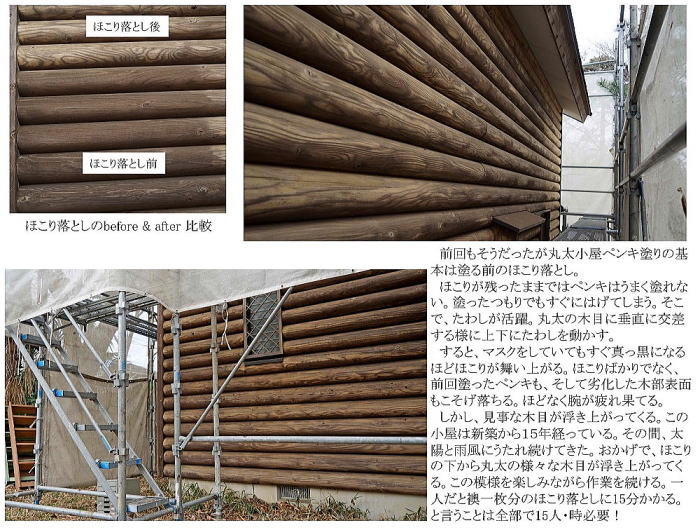 ![]() 外壁丸太のペンキほこり落し(4頁) ![]() 外壁丸太のペンキ塗り(5頁) |