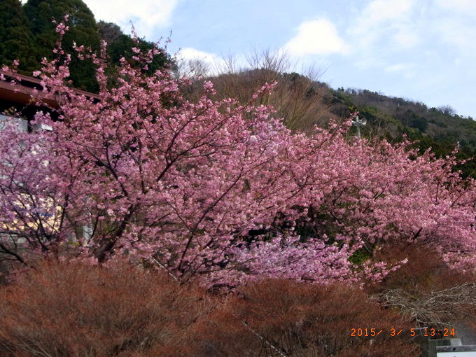 ■2015年3月5日 三四郎会B班報告 坂井 溢弘(昭和41年卒) ****** 『針葉樹会報第133号』から転載 B班の行程は、宿泊所「三吉」からタクシーで標高700mの「水生地下」まで行き、約100m登って旧天城トンネルに達し、トンネルをくぐって、伊豆の国に出、二階滝、平滑の滝、釜滝などを経て標高200mの河津七滝、大滝入口に達する210分のコースである。 伊豆の国の明るい陽光の中、河津川沿いの爽やかな道を頻繁に現れる滝を見ながら、佐藤(力)、佐藤(久)、池知、坂井の爽やか且つスマートな面々で下って行くのは中々楽しいものだった。楽しくてあまり記憶に残らず、「滝がきれいで見事だった」とか「山葵田が爽やかだった」位の記憶しか残っていない。 山の中は良くて、このままバスもスムーズに来て、楽々、河津駅に下り、コジャレタ食事を楽しんで帰途につくはずだった。が、まず大滝入口のバス停が中々見つからず、指定時刻を過ぎてもバスが来ず、やっと来たバスはお客をギュウギュウ詰め込み、運転席の隣にやっと立ったまま乗せてもらった四人は真直ぐ立っているのが精いっぱいのドライブだった。漸く河津駅の周辺まで達したが、そこは河津桜見物の客、客、客がごったがえす無粋な雑踏の中。ノロノロ運転の後、漸くついた駅で切符を購入、これは上手くいったが、次の食事が又難題。雑踏の中を適当な店を探したが、最後にたどり着いたのは喫茶店。ビールでなくコーヒーで止む無く落ち着いた。コーヒーの後、駅に向かう途中でA班に出会った。この雑踏の中で「良く出会ったものだと」お互い感心しながら帰途についた。 最後になるが、大滝入口周辺、河津の川沿い、駅周辺の古木と河津桜は見事だった。 |