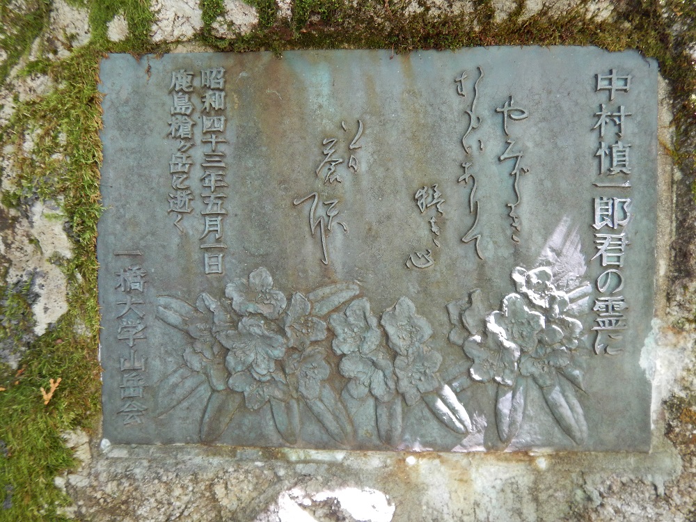 ■2015年10月 故中村慎一郎君遭難慰霊碑を探して 三度目の正直 松尾 信孝(昭和48年卒) ******2015年10月11日投稿 1968年5月北アルプス鹿島槍天狗尾根にて遭難死した中村慎一郎君の遭難慰霊碑は、麓の大谷原から大川沢左岸を遡った地点に建立された(注1)。 一昨年(2013年)5月アダージオ懇親山行のあと、しばらくぶりに有志で追悼しようと訪れたものの、上流(荒沢出会いの下流)に堰堤が造られ、その工事のために右岸にトラック道が造られたため周辺の地形が大幅に変わってしまったことと、雪解けで増水した大川沢を左岸に徒渉するのが困難であったため、慰霊碑の場所を特定できないまま、対岸の林道から追悼した。 昨年(2014年)11月、大川沢の水量が一番少ない時期を見計らって松尾が単身で営林署跡辺りから廃道となった左岸の道をたどって記憶を頼りにそれらしき場所を探しながら堰堤まで遡るも、発見できなかった。 (以上2回の探査行は一橋山岳会ホームページに掲載済み(注2)) 以上の結果から、次は水量の少ない秋に複数人数で探そうと、去る10月7日再々度の慰霊碑探しとなった。前夜川上村の藤原山荘泊の中村(雅:昭43)、藤原(昭44)、宮武(昭45)と、前日までの日野町議会の委員会を済ませて夜中に蓼科帰着の松尾が中央道原パーキングエリアで合流して大谷原へ。 まだ10月初めのせいか大川沢は思ったより水量が多く、徒渉はできなくはないがむしろ大ゴ沢が思ったよりおとなしく見えたので、出会いのすぐ下流にある作業用の橋を左岸に渡り、大ゴ沢を2,3歩ざぶざぶと徒渉して、ようやく念願の大川沢左岸の元登山道にとりついた。そこからおよそ10分で営林署跡。当時は大谷原からしばらく右岸添いに辿ってこのあたり吊橋で左岸に渡っていたと記憶する。そこからさらに15分ほどササをかき分け時々残る元登山道を辿ると、なんとなく記憶にある場所に行きあう。そこで各人の記憶の細部の違いが現れる。慰霊碑は沢沿いで沢底から1−2メートルのところにあると記憶している者もいれば、元登山道から5メートルほど入った川を望む崖の上にあると記憶している者など。しばらくして藤原さんの「あったぞー」の声が。藤原さんは忠実に沢沿いの崖の上をたどったのだ。ただそこは沢底からは20メートル近くも上の崖の上、元登山道からは30メートルほど入ったところであった。 ともあれ3度目の正直でようやく見つけた慰霊碑の前で、線香をあげ、持参の花とビールを供えて山讃賦を手向け故中村慎一郎君を慰霊した。しばらく当時の部活動のことなどの話をして弔いとし、一同これでようやく肩の荷を下ろした思いで来た道を大谷原に戻った。大谷原から見上げる鹿島槍は、秋晴れの雲ひとつない青空を背景に「うつつなくゑまひする」かのような山讃賦の世界であった。 (注1)針葉樹会報の中村慎一郎君遭難慰霊碑に関する記事 1.『針葉樹会報第74号』1990.1 「初秋の鹿島槍」西牟田 伸一 ・西牟田さん単独でレリーフ探すも発見できなかった。 ・俵昭さん作成のレリーフ位置略図掲載 2.『針葉樹会報第93号』2001.3 「懇親山行報告[中村慎一郎君レリーフ訪問」 西牟田 伸一 ・西牟田さん、松尾さん、中島昭子夫人の3人でレリーフ訪問 ・レリーフまでの詳しい道順記述掲載 (注2)当ホームページ(トピックス)の中村慎一郎君遭難慰霊碑に関する記事 1.2013年5月12日 故中村慎一郎君の大谷原追悼行が行われました。 藤原 朋信 金子 晴彦 2.2014年11月 故中村慎一郎君遭難慰霊碑を探して 松尾 信孝 |