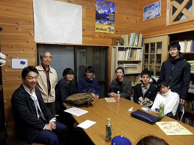■2012年4月14日 新緑の宴の報告 前神 直樹(昭和51年卒) ****** 2012年4月23日投稿 4月14日、新緑の宴開催 出席者 OB 三井、小島、佐藤(力)、佐藤(久)、川名、前神 学生 山根(4年)、小宮山(3年) 今年はもしかすると本当に花見の宴が出来るかも思ったが部室横の桜も半分葉桜で、雨も降っていたので室内での宴会になった。 学生が本格稼動をし始めてきているのでかなりの大人数になるかと思ったが、意外と少人数となり、家族的な雰囲気の中で川名さんが指揮して作ったシンプルなれど美味なキムチ鍋を堪能する。それに加えて佐藤(力)さんが差し入れていただくいつもの手料理が加わり、人数の割りに用意しすぎた料理が余り気味となってしまった。 学生は既に峯君という3年生が入部しているのだがこの日どうしても都合付かず、2人だけの参加となる。準備から一緒にやってOBを歓待することになったが次回からは学生がすべてやるというので楽しみではある。ただどんな料理が出されるかは想像がつかない。 山の話は散々出たが、厳しい就職戦線の真っ只中にいる山根さんには昔の就職経験談がどんどん飛び出し、そちらの方が参考になったかもしれない。今後のことを言えば、昔と今では就職活動のプロセスが全く異なるのでOBもどこまで何が出来るかはわからない。 入部の勧誘は5月の方がむしろ本番のようで勧誘の手さえ緩めなければもっと入部してくる人間が出てくることを期待させる。 富士山にもどれだけの人間が来るかは、今後の勧誘活動次第というところ。 以前学生には夏谷川岳周辺のミニ沢登り合宿をやろうと話していたがやはりまずは綺麗な山を見て登ることが肝心と、昨年の徳沢ー蝶ヶ岳に続いて今年は涸沢でテントを張ってOBの方々にも来てもらおうということになる。日時は9月6〜9日。OBの方々にはテントではなく 山小屋で泊まっていただくことは勿論問題なく、昔の合宿のようにわいわいと食事は一緒しようというプラン。 昨年の月見の宴はトンでもないほどの酒量で出席者の何人かは意識を無くしていたようだが、今年は秩序ある飲み方できちっと掃除をして部室を後にした。 |