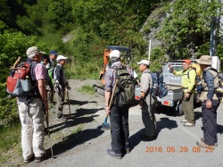 ●御礼:平成29年6月三四郎会(報告) 小島 和人(昭和40年卒) ****** 2017年6月10日HUHACメールより転載 谷川の三四郎会にご出席の皆様 ご苦労様でした。 特に幹事の原さんご苦労様でした。完璧なアレンジ有難う御座いました。 今回の宿、部屋もきれいで広々、湯も各種揃い皆で歓談を楽しめたのは良かったですね。夕食の内容が寂しかったですが健康には良かったと思います。 翌日も幹事さんの陰で晴れ渡りそれぞれのパーティー愉しめたと思います。原さんに心から御礼申し上げます。本格登山の岡田さん、宮武さんからは無事登頂報告が来ていますし、厳剛新道の本間さん、佐藤力さんも大人の散歩で済んだようですし、嫌がる坂井さんを天神山から熊穴沢避難小屋に引き上げた小野・半場・小島も十分に懇親を果たし帰りました。原さん久さん池知さんは心配ないので十分新緑と戯れたことでしょう。 所要で朝早く帰られた蛭川さん、吉沢さんご苦労様でした。 と言う事で皆さん十分楽しんだと思います。高崎俊平さんがいないのが寂しい限りでしたが。。。 皆様 来年の三四郎会は函館です。蛭川さん・小野さんが幹事役を引き受けてくれました。 今年参加できなかった皆さんも是非ご参加ください。 ●Re:御礼:平成29年6月三四郎会(報告) 宮武 幸久(昭和45年卒) ****** 2017年6月10日、11日HUHACメールより転載 原さん 皆さん 何とかトマノ耳登頂を果たし無事に帰宅しました。たいへんおせわになりました。 ●Re:御礼:平成29年6月三四郎会(報告) 原 博貞(昭和41年卒) ****** 2017年6月10日、11日HUHACメールより転載 皆さん、それぞれに大晴天の谷川を楽しまれたようで何よりでした。 一番、楽なコ−スを選択しましたが、思わぬ体験がありました。意外な 勉強をさせて貰いましたので是非皆様にも共有して頂きたく。 水上駅からロ−プウエイ行きのバスに乗る際、運転手さんに「土合駅のちょいと先で蓬峠に行く林道に入りたいので入口で下して」と頼みました。運ちゃんは「そうか。新道に入るのね。土合橋で降りて」と言いました。「新道?あれは古道だと思うけど」と思いつつ本間さん力さん、池知と私は湯檜曽川沿いの道に入りました。春蝉がやかましく鳴くなかで河鹿の澄んだ声が奥床しくいい気持ちで歩きました。 マチガ沢から上の林道にふうふう言いながら登りますと看板があり「旧道マチガ沢出会い」とあります。「旧道?」 舗装されているから新道だろう、と言い合いました。そこで力さんは帰りました。3人は一ノ倉沢の出会いへとブラブラ歩き。すると超大きなベッドに車輪と4本の柱、屋根を付けた乗り物が、滑るようにやって来ます。 中には運転手と女性が1名乗っており、その女性がニッコリ笑い手を振るのです。「なんじゃ、これ?」とハテナマ−クが続く中、一ノ倉に到着、かっての出会いの避難小屋は立派なコンクリ−トの超でかいトイレに変わっていました。久ちゃんはロ-プウエイの乗り場からこちらにむかっているので、もうとうについていると思ったが不在、(幽の沢に行っていました)暫く一ノ倉を眺め、本間さん達は弁当を食べるというので、私は先に行ってロ−プウエイ駅でラ−メンを食っている、と言って、先程のトイレに行くと前にあの謎のベッド車が駐車していました。 よく見ると「ロ−プウエイ駅-一ノ倉沢間運行電動バス」とあります。居合わせた運ちゃんに聞くと3年前に運航開始、ガイド付きで5百円だとの事。喜んで本間さん達を誘い、乗り込みました。いやあ、楽ちん楽ちん。女性のガイドさんの藩士をたのしみながらゆるゆるとドライブを楽しみました。そこで得た新智識です。 (旧道・新道の名前の由来) 明治10何年に蓬峠を越えて関東と新潟を繋ぐ国道の建設が始まった。いまも道の横に残る石垣がその名残だと。数年かかって工事は完了し馬車がとおる事となり、開通に際しては宮様が馬車で通過したんだと。しかしながら、地形的に無理があり、峠の手前で大崩壊があり、普通になってしまった、そこで国道から県道に格下げとなってしまった。それで旧国道、その国を略して旧道と呼ぶことになったと。(今は又、国道291号として復活したが群馬側は一ノ倉沢出会いで終了している。新潟側は巻機山の登山口である清水の部落の少し峠寄りで291号は終わっており県境はブランクのまま。ここで又ちっと謎が残る) では何故、川沿いの道は新道と呼ばれるか? 旧道が壊れた後、清水峠を越える新しい道が整備され、(これが川沿いの道)清水越え新道、略して新道となったと。元来川沿いの道は古くからあり、有名なところでは上杉謙信の関東北条攻めの際、本隊は三国峠を通ったが支隊はこちらを通ったそうです。先程の謎にも繋がるんですが、昔の道は清水峠を通らず蓬峠から土樽に出たものと思われます。一方、旧国道は蓬峠から土樽へは行かず、清水峠から真直ぐ下り清水の部落へむかったのでは?というのが私の推察です。 てな事をガイドのオネエサンとしゃべりつつ、ロ−プウエ