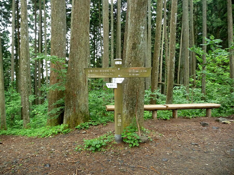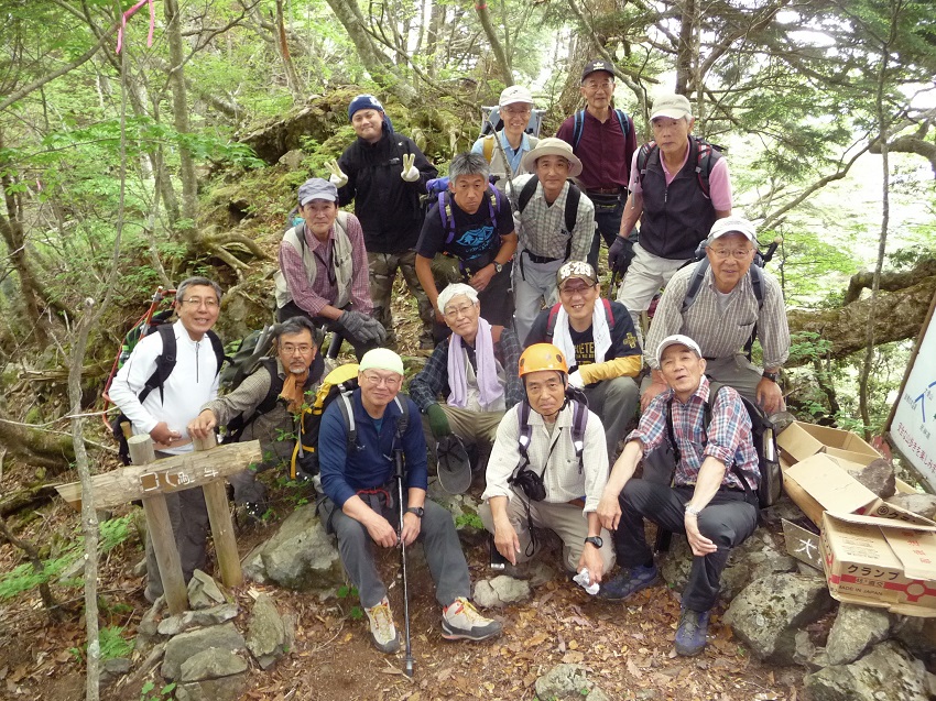 【6月10日:御前山コース】 本間 浩(昭40年卒) ○メンバー 小島和人 本間浩 ○コースタイム 御岳山・山香荘(8時50分)―2時間55分 休み@―大岳山(10時55分〜11時20分)―3時間25分 休みC−御前山(14時45分〜14時55分)―55分―トチノキ広場(15時50分)=タクシー 鳩ノ巣駅 天気が良ければ、前日に奥多摩湖から大ブナ尾根を御前山に登って、栃寄に下り、翌日10日は、前夜の飲酒を考慮して最短距離、宿から大楢峠経由で鳩ノ巣に下る予定でした。駅前の大橋食堂で小島さんとお互いの健脚を讃え合い、美味しい昼酒を戴くつもりだったのに。雨の予報で! 奥多摩には三山が三つあります。高水三山・戸倉三山・奥多摩三山の計九山の内、小生登っていないのは「御前山」だけなのです。この機会に行かねば死ぬまで登れないことでしょう。 「山香荘」から御前山へは大岳山経由しかルートがないのですが、如何せん長い、見るからに長い、途中昇り降りも多いだろう、行けるかなと不安を抱えながら(内心では、駄目なら鋸尾根を下ればイイヤと)出掛けることにしました。 5〜6年前学生の米田君と、御岳山から大岳山、馬頭刈尾根を軍道まで下ったことがありましたが、その時の印象ではつづら岩の怖さとその先バス停まで長かった事しか頭に残っていませんでした。 大岳山までは同じ道を歩く「つづら岩」チームが先に宿を出てしまったので、遅れまいと御岳山神社には寄らず下の道を行きました(彼らは神社から鍋割山経由の上の道を行っただろうと)。芥場峠から先が、特に大岳神社から先が岩がちのこんなにキツイ登りだったとは!山頂が近いのが分かっているだけに休むに休めず1時間5分も歩かされました。救いは前夜の酒の気がすっかり抜けたことです! 食事を終え一服していたら、「つづら岩」チームが到着。先の長さを考え二三言葉を交わすだけで御前山に向かいました。山頂から急な下りが続き気が抜けないのですが一旦落ち着くと緩やかな登り下りに変わり快適な山道歩きが続きます。すれ違ったパーティーは10組以上あったでしょう。人気コースなのでしょうが、どうも大岳山に向かうほうが主流のようです。 鋸山を巻いて間もなく車道に出、これから鞘口山、クロノ尾山と御前山への長い登りが続きますが、比較的緩やかで土を踏んで歩く良い山道と言えます。尤も栃寄分岐から先の最後の登りはさすがキツカッタですが。 山頂は眺めも良くなく、3時前と云う時間も時間なので一服してすぐ降りました。分岐から直ぐに避難小屋があり窓から覗くと板敷で10人以上は泊まれる綺麗な小屋です。学生さんがここを使えば1泊2日で奥多摩三山、三頭山(1531m)御前山(1405m)大岳山(1266m)の縦走が出来るなどと話しながら下っていくと、60リッター位のザックの二人組とすれ違いました。時間から診て、連中今夜は小屋で酒盛りだなーと。 やがて登山道に「体験の森」の広い林道が交錯しはじめ、タクシーを呼ぶ都合上林道を下りました。ただ地図・看板案内図を見ても位置関係がよく掴めず、取敢えず「森」の一番下とおぼしき「トチノキ広場」に向かいましたが、ここは東屋付きで車の折り返しも可なのでここで車を呼び、着替えも済ませました。(しこたま汗をかいていたのでまことにイイ気持ち) 待っているのも疲れるので下る、と工事の車と会い現在道路は閉鎖中と聞く。ゲートまでは30分以上下ると聞き、ヤッキリするが工事の若い女の子が乗っけてくれるとのこと(菩薩に見えたネ)。 鳩ノ巣の大橋屋に着いたら、井草さんが仕事仲間と飲んでいる処に出会う。それに半分加わりながらビールで疲れを癒す。例によっていろいろツマミが出て来るのだが、疲れたせいか箸が動かずもっぱらビールを飲むだけ。井草さんは今日枝打ちをやってきた由。花粉を減らすため、木が生きるギリギリまで枝を落とすそうで、杉・檜が裸で帽子だけをかぶっている状態を想像すればいいのか? 近々「わさび」の植え付けを行うとのこと。帰りが長いし疲れもあり、1時間位で切り上げる。 天気予報を信じなければもっと楽な山行を楽しめたのだが、人がイイもんでつい口車に乗ってしまいました。しかし小島さんにとっては来月の幌尻と8月の聖・赤石、小生にとっても聖・赤石が控えており、そのための良いトレーニングになったこと確かで、それなりに有意義な山行だったと云えるのでは。 【6月10日:鳩ノ巣、裏参道コース】 原 博貞(昭41年卒) 皆様、いろいろ有難うございました。私は山歩きを浪人中の単独の奥多摩登山で始めたので、思い入れがあり奥多摩が好きです。山香荘も今回が3回目で、久ちゃんがここを会場に指定した時、「やった」とよろこびました。 帰路を鳩ノ巣への裏参道としたのは、1)下りだけで楽そうだ 2)途中で越沢バットレスを通る、 というものです。学生時代の岩登りトレーニングは、ほとんどが葛籠岩で行われましたが、あそこはアプローチが長く、その割にはルートが単調で不満がありました。卒業後組んだ相棒に越沢に連