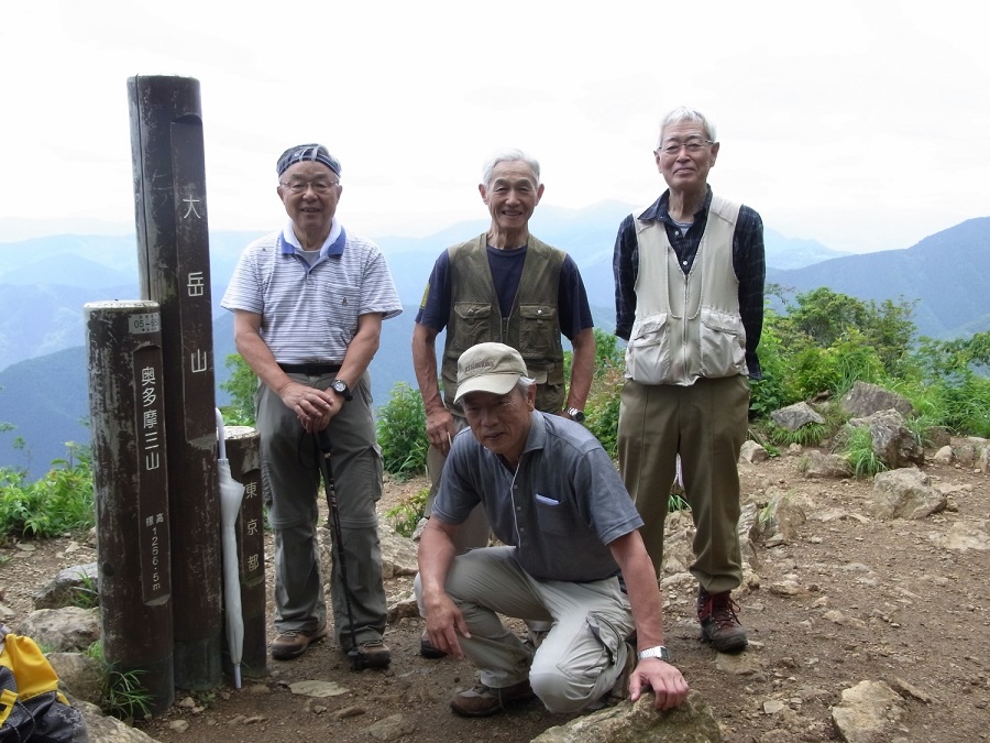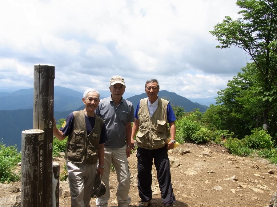 【6月10日:馬頭刈尾根コース】 佐藤 久尚(昭41年卒) メンバーは、佐藤力、岡田、佐藤久の3人。御前山経由奥多摩駅に下るという本間・小島さんパーテイと大岳山まではコースが一緒なので、お二人を宿の玄関先で待つも、なかなか出てこないので、一足先に出発する(8:45)。宿を出て御嶽神社の階段の脇から大岳山方面の標識に従って水平な道を進むと、「奥の院・鍋割山経由大岳山へ行く道」と、「それらを巻いて大岳山に直接行く道」との分岐点に出る。躊躇することなく奥の院、鍋割山経由の道に入る。奥の院までは鬱蒼とした杉木立の中の急な登り。フィトンチッドを体の芯まで浴び森林浴を楽しむ気分で登り、奥の院、鍋割山を超えて大岳山に着くと(11:20)、山頂では既に本間さん小島さんが休んでおられた。お二人は巻き道を通って来た由であるが、まさか先に着いているとは思わなかった。意外や意外。お二人は山頂で休んでいる間、遠くに見える御前山の方を見ながら、「あそこまで行けるかなァ−」と弱気なことを言っていたが、最後は「よしっ」とばかりに気合いを入れて、先に出発して行かれた。 山頂でお二人の出発を見送った後、我々は馬頭刈尾根コースを辿る。このコースは会社に入ったばかりの頃、会社の山岳部のハイキングで10数人の若い女性(中には気になる子も複数いた。)と一緒に楽しく歩いたことがあり、それ以来50年ぶり。昔の思い出に耽りながら小さな凹凸を超えて行くと、1時間20分で”つづら岩”に着いた。つづら岩は、現役の頃、何度か岩登りの練習に来たことがある懐かしい所なので、休んでじっくりと岩との対面を果たしたかったが、バスの時間に追われていたので、数秒間立ち止まって岩を見上げただけで通り過ぎた。(つづら岩は周りの木々が大きくなったせいか、スケールが小さくなった感じで、昔のすっきりした岸壁の印象がない。下からルートを目で追ってみたが、昔登ったルートなど全然思い出せなかった。)つづら岩を過ぎてちょっと行ったところから、千束への下りの道に入る。昔はつづら岩からの下りは、灌木に捕まりながらずり落ちるようにして下った記憶があるが、今は檜の養殖林の中に立派な道が着けられており、難なく千束のバス停まで下ることができた。14:24発のバスに間に合い武蔵五日市駅に出て無事帰宅した。 |