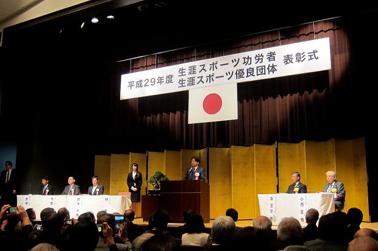 ■2017年10月6日 中村保会員(昭和33年卒)が生涯スポーツ功労者表彰を受賞されました。 ****** 2017年10月8日投稿 2017年10月6日、中村 保会員におかれては、文部科学省スポーツ庁所管の『生涯スポーツ功労者表彰』を受賞されました。 日本山岳・スポーツクライミング協会(JMSCA)の推薦によるもの。 中村氏の、永年にわたる「Japanese Alpine News」(英文)による日本の山岳界の動向の海外向け発信や、これまた息の長い、 「チベットの東」への冒険行と豊富な地図や素晴らしい写真を載せた報告書、が評価されたものです。(文責 岡田 健志) ●2017年10月7日 29年度生涯スポーツ功労者表彰 中村 保(昭和33年卒) ****** 2017年10月7日HUHACメールから転載 日本山岳・スポーツクライミング協会(JMSCA) 八木原会長・尾形専務理事・小野寺常務理事殿 昨日の午後、文部科学省において開催された「平成29年度生涯スポーツ功労者及び生涯スポーツ優良団体」表彰式に出席しました。(写真を添付) 文科省のスポーツ行政の一端をうかがわせる行事でした。表彰された「生涯スポーツ功労者、は156人、「生涯スポーツ優良団体」は116、全国津々浦々の功労者、団体が対象です。選択の仕組・基準は分かりませんが、「生涯スポーツ功労者」156人のうち推薦団体が明記されているのは日本体育協会推薦が13名、日本レクリエーション協会推薦が6名でした。中村の場合はJMSCA経由日本体育協会の推薦によります。有難うございます。 表彰された個人、団体の所属は多岐に亘りますが、山岳関係は小生と宮城県山岳連盟の方の二人でした。 式次第は文科省関係の紹介に始まり、国歌斉唱、表彰状授与(代表に)、林文科相大臣挨拶(鈴木スポーツ庁長官も参列)、泉日体協副会長来賓挨拶、受彰者代表(1976年モントリオール・オリンピック、バレーボール金メダリスト)挨拶、記念撮影の盛りだくさんな行程を僅か一時間半(14:15−15:45)で終えました。実に効率的で手際のよい進行でした。受彰者に林大臣の表彰状と記念品として「銀杯」(直径10.5cm 写真添付)に付与されました。 今回の栄誉はJMACSAのご配慮のお陰です。 改めて深謝いたします。 (追記) 表彰を受けた全国各地の団体と個人の帰属団体のスポーツは多岐に亘ります。以下列挙します。スポーツ庁がカバーする範囲は広いです。因みに来年度から日本体育協会は「日本スポーツ協会」と名称を改める由です。 体操、ボーリング、野球、銃剣道、パスケットボール、サッカー、山岳、フェンシング、サッカー、バレーボール、ホッケー、ソフトボール、フォークダンス、水泳、アイスホッケー、ハンドボール、スキー、エアロビック、スポーツチャンバラ、ゲートボール、レスリング、ソフトテニス、相撲、陸上競技、バドミントン、アーチュリ―、柔道、空手、軟式野球、テニス、ウオークラリー、セーリング、ミニバレー、綱引、ゴルフ、ママさんバレー、ライフル射撃、障害者タンデムサイクリング、各地の少年スポーツクラブ、障害者スポーツ団体 |