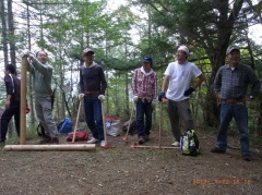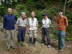 ![]() 5月21日 13:01(撮影:岡田)鉄索の頭にて (後列右端:岡田) (中列左から小島、佐藤) (前列左端:宮武) |