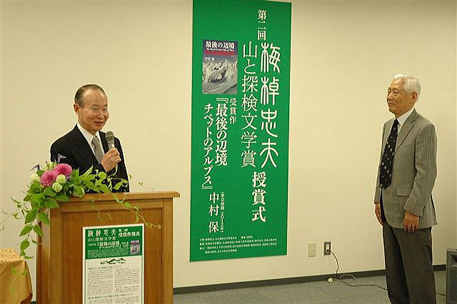 ■2013年5月29日 Re: Japanese Alpine News and Centenary & 梅棹忠夫賞 中村 保(昭和33年卒) ****** 2013年5月29日HUHACメールから抜粋 (略) 昨日は「第2回 梅棹忠夫 山と探検文学賞」授賞式が長野でありました。 下記は審査員のお1人、江本嘉伸さんの横断研ニュースへの配信です。 |