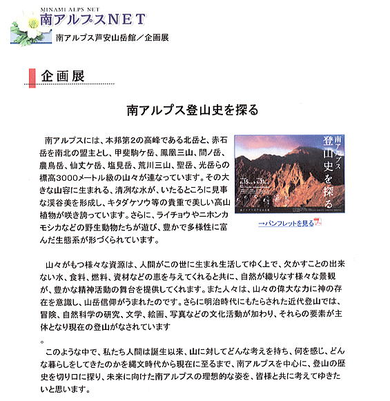 【『南アルプス芦安山岳館』ホームページ 「企画展」より転載(抜粋)】![]() |