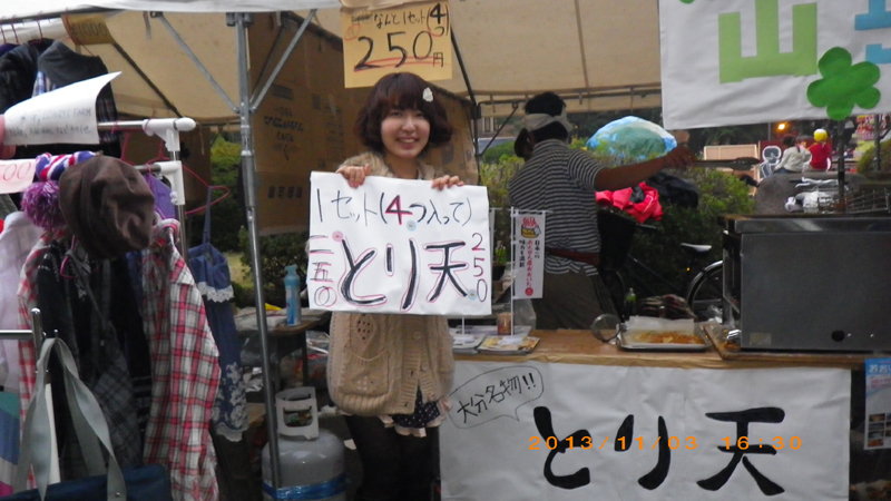 ■2013年11月3日 月見の宴(含む「とり天」出店)の報告 小宮山尚与志(商学部4年) 原 萌子(社会学部2年)